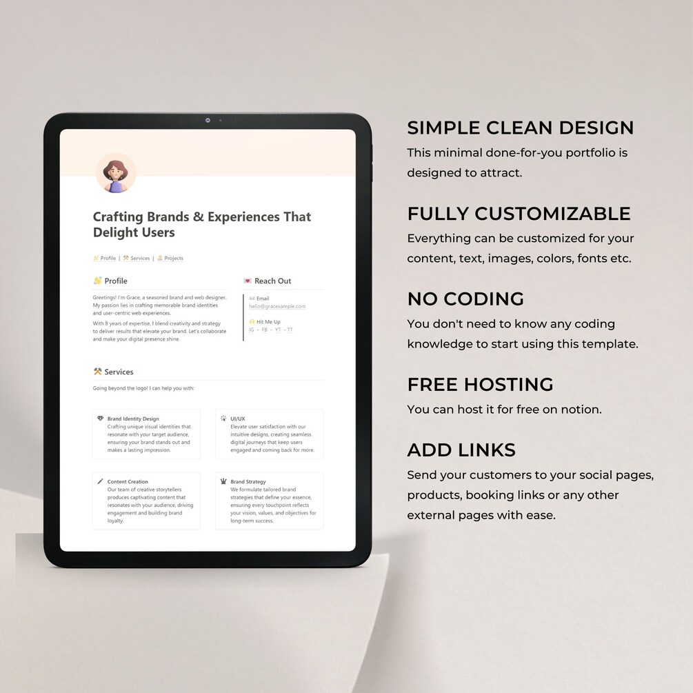 • About Section: Introduce yourself and your design journey. Share your passion and expertise with your audience.